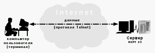 TELNET - одна из самых старых информационных технологий Интернет. Основным назначением протокола является реализация сетевого терминала для доступа к ресурсам удаленного компьютера. Протокол TELNET обеспечивает двунаправленный восьмибитный канал передачи данных. Его главной задачей является создание стандартного метода взаимодействия терминальных устройств и терминал -ориентированных процессов через сеть: