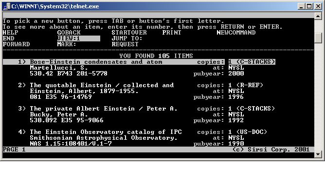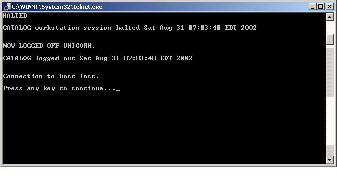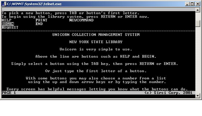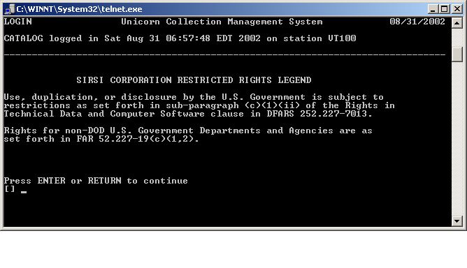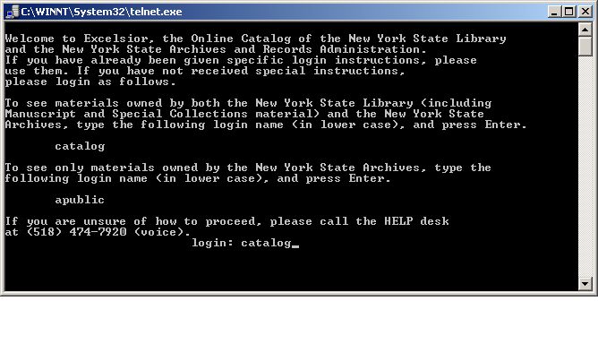 После установки соединения наш компьютер станет удаленным терминалом узла nysl.nysed.gov и дальнейшая работа будет происходить точно так же, как если бы мы находились непосредственно у терминала этого компьютера.