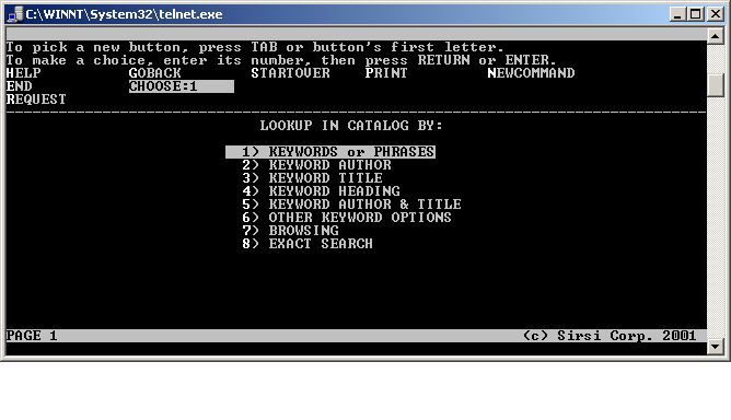 Нажмем клавишу 1 (LIBRARY CATALOG), затем Enter.